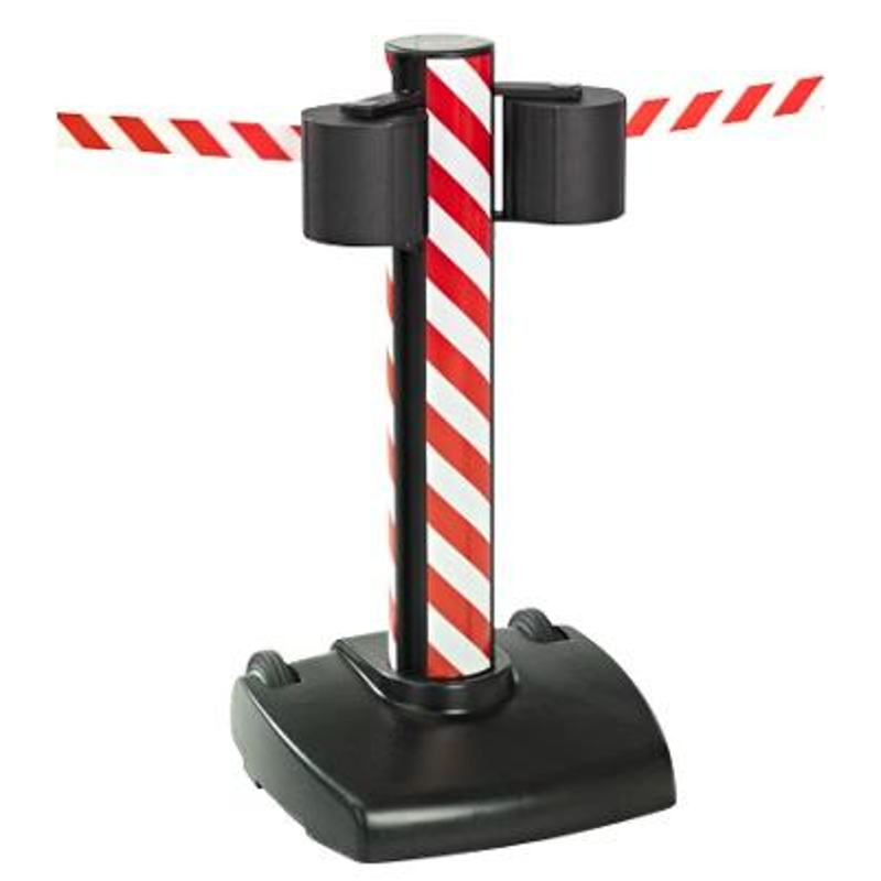 The Beltrac Storetrac Double is designed for industrial sites, stadiums, and any indoor or outdoor location requiring quick and secure demarcation over large distances. With a total length of 44 meters (2 x 22 m belts) and a low center of gravity, this un