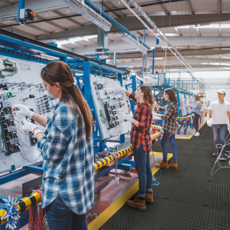 This modular platform improves worker comfort, reduces fatigue, and protects sensitive electronic components by dissipating static electricity in controlled environments.