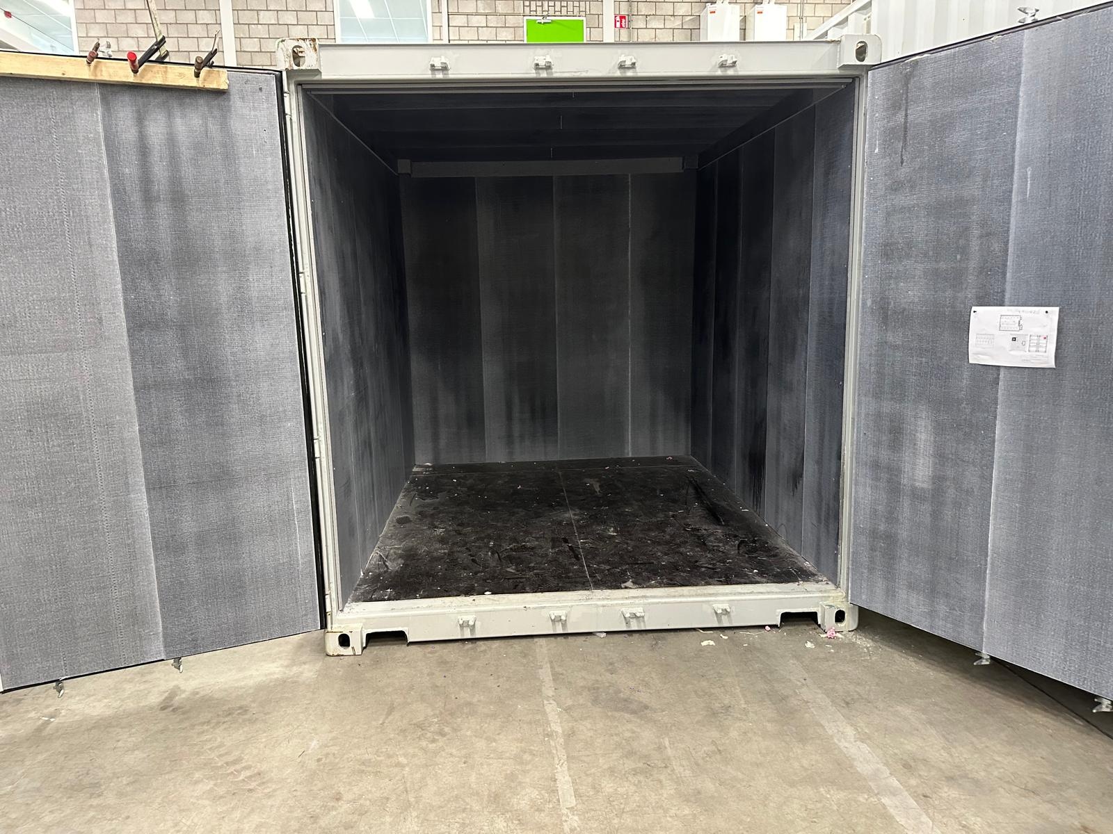 4 feet fire retardant 90min sea container for storage of hazardous and flammable material including lithium ion batteries. Made in EU PGS37-2 certified LxWxH 1.80x1.86x1.73m
