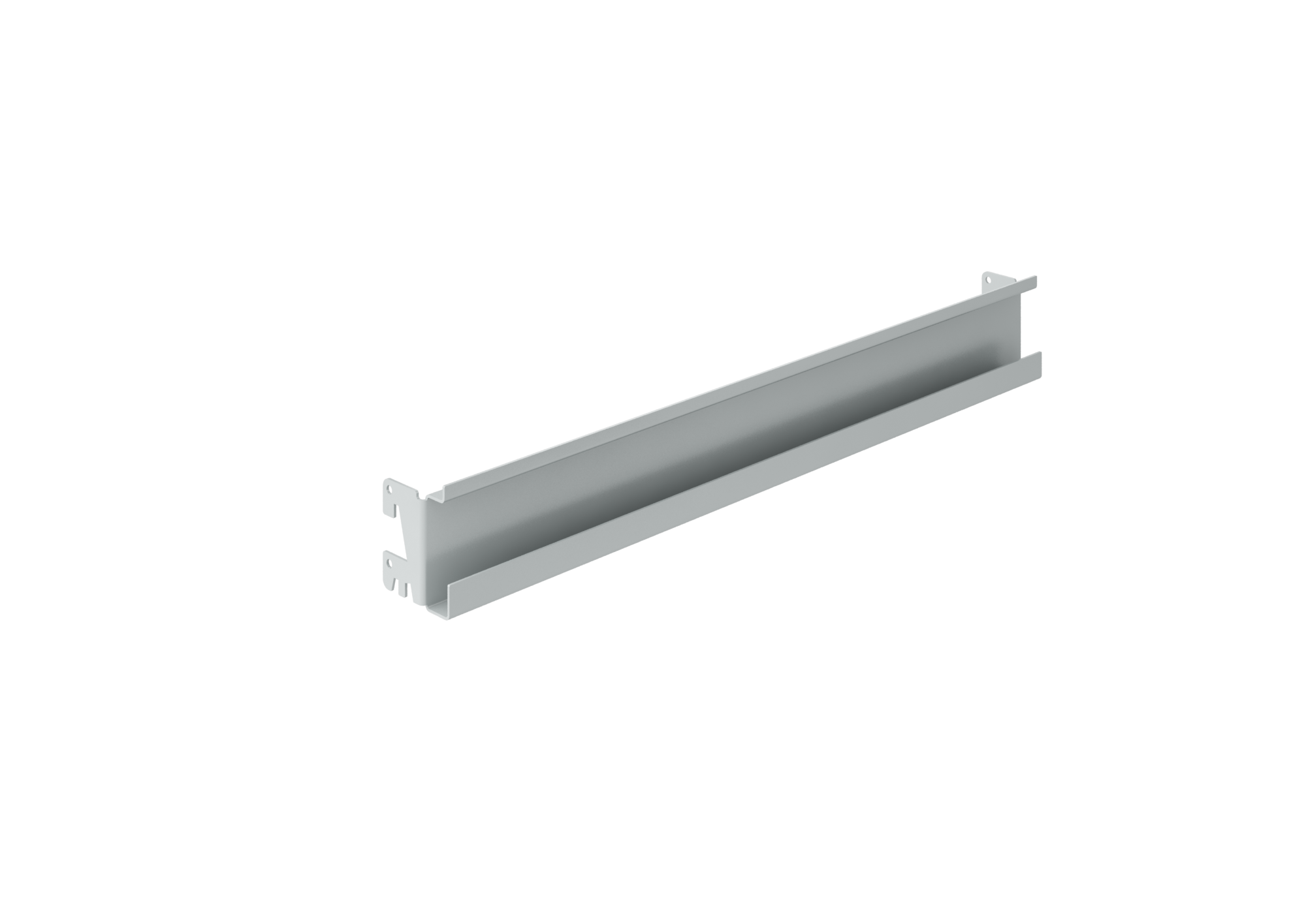 The Grab Containers Support Rail by Salesbridges is a heavy-duty rail system designed to hold storage bins between superstructure uprights. Made from 20/10th thick folded sheet steel, it supports grab containers either vertically or at a 15° forward inclination to enhance visibility and access to contents.