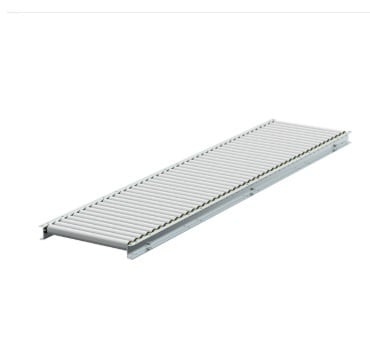 Complete gravity conveyor set: 2400x500 mm section with plastic rollers (105 mm pitch) plus adjustable support leg 651–959 mm. For cartons and parcels. Load up to 160 kg (legs at 1.2 m). Delivery across the GCC.