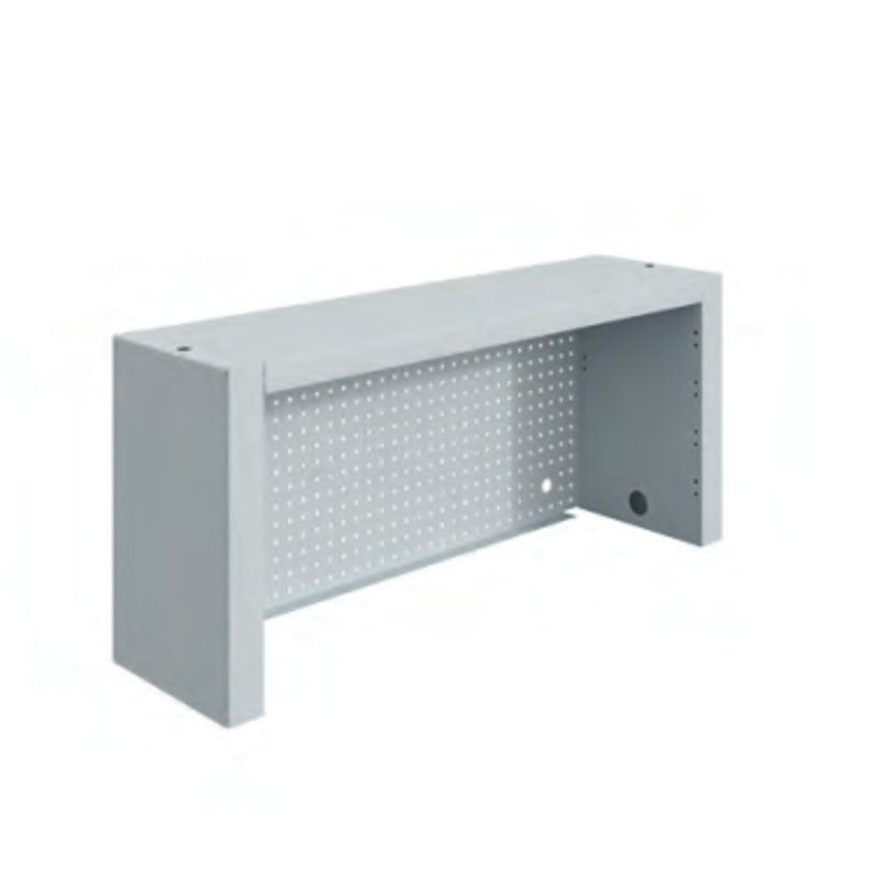 The Perforated Panel by Salesbridges is a premium add-on for the Upper Shelf Extension system, providing enhanced vertical storage for hanging tool-holder equipment. Made in France from 15/10th thick folded sheet steel, it features a square 10x10mm perforation pattern spaced at 38mm, offering full compatibility with hooks and modular tool accessories. Integrated 35mm cable entries on both sides allow clean wiring through the upper shelf. This perforated panel is not compatible with intermediate shelves.