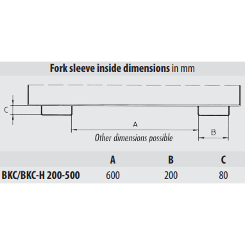Forklift-compatible sleeves: 600 × 200 × 80 mm