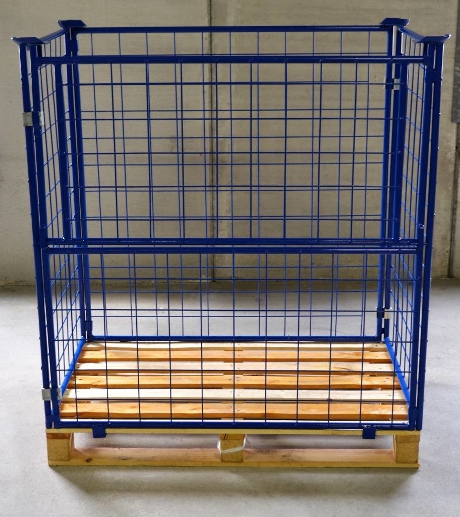 Manufactured from high-quality steel with a durable powder-coated finish (RAL5010), this cage container ensures long-lasting performance and corrosion resistance. The practical folding window allows for easy access to contents, even when containers are stacked. Engineered to fit standard industrial pallets (1200 mm x 1000 mm), it is the ideal solution for optimizing warehouse operations and safeguarding your merchandise.