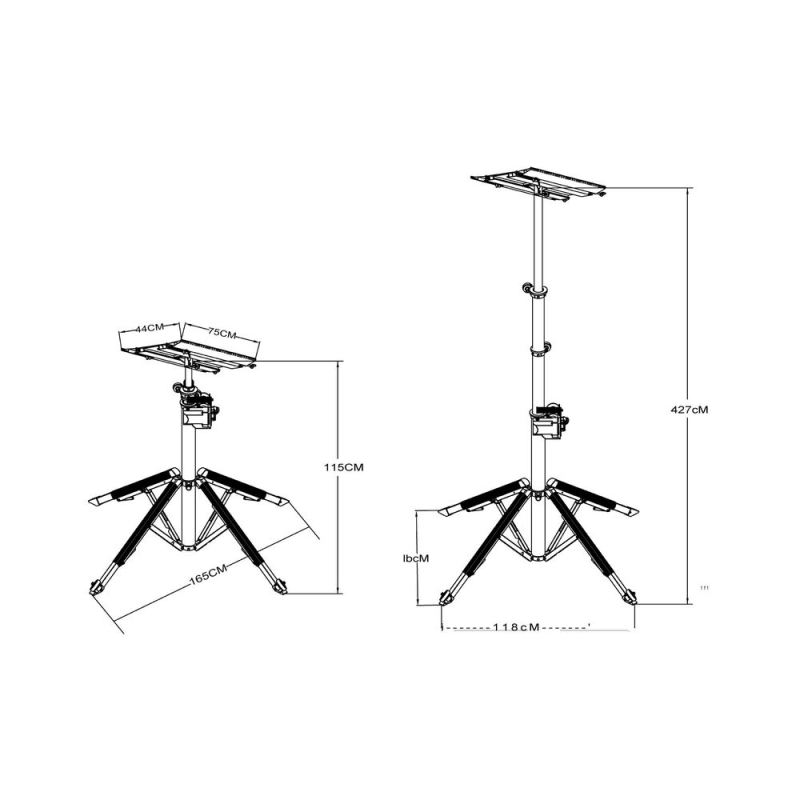 - Telescopic Mast movement for precise positioning.Cradle designed with 360° rotating head, and tilts up to 90°.